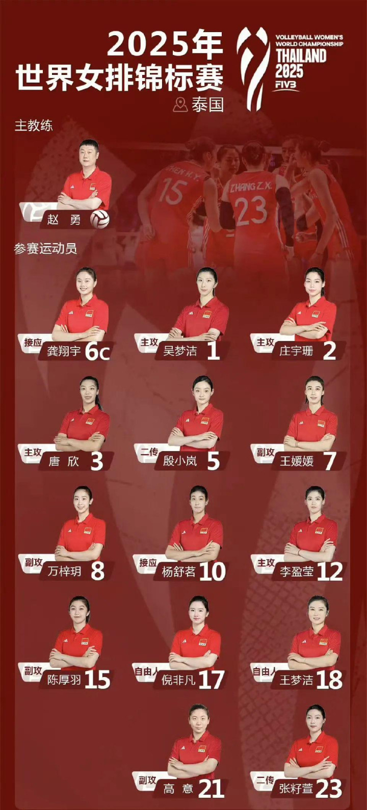8月16日,中国女排公布了出战本届世锦赛的14人名单,李盈莹和高意皆在阵中。赵勇表示,教练组对李盈莹的使用,将在保证运动员健康的前提下,根据她的实际情况来合理安排。